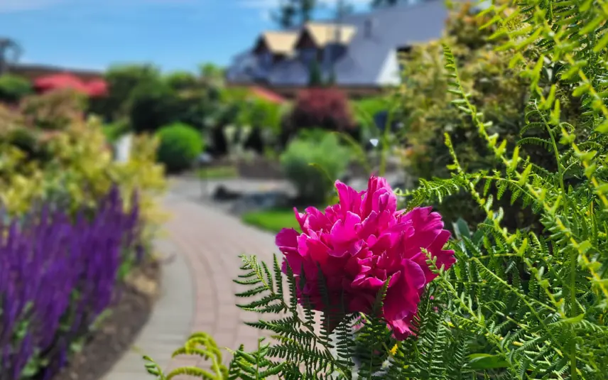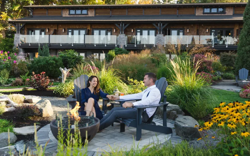 Exquisitely landscaped gardens curve around private seating areas, where Adirondack chairs surround cozy fire bowls, which turn off every night at 10 p.m. It’s the perfect place to savour a glass of wine and good conversation. Our dedicated gardener ensures an ever-changing array of beautiful blooms are on display from spring to early autumn.